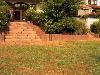 Treppenanlage aus Boss-Antik Blockstufen, Einfassung mit Bossapal Palisaden.