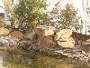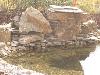 Teichanlage mit Bruchstein-Bachlauf, Folie wurde mit Oberrheinkörnung in verschiedenen Kornabstufungen abgedeckt und bepflanzt.
