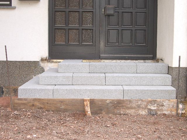 NEUER Treppenaufgang aus City-Blockstufen granit-grau gestrahlt. Zugang von zwei Seiten!!